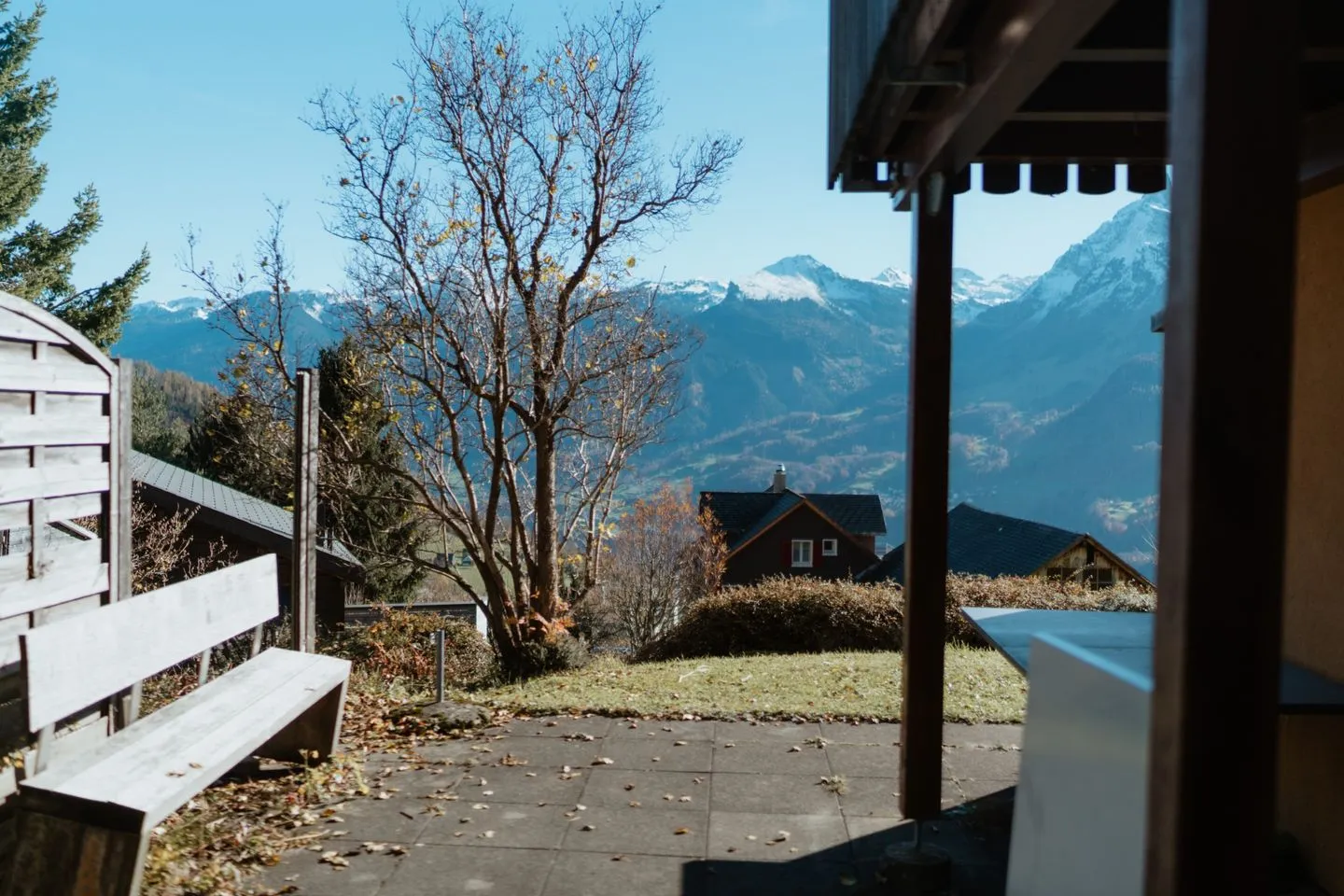 Das absolute Highlight des Apartments ist der grosszügige Aussenbereich mit Terrasse und Garten. Hier geniesst man einen wunderbaren Blick auf die umliegenden Berge und das Tal – perfekt, um den Tag mit einem gemütlichen Frühstück an der Sonne zu beginnen oder den Abend entspannt bei einem Glas Wein ausklingen zu lassen. Der Garten bietet viel Privatsphäre und lädt zum Verweilen, Spielen oder einfach zum Durchatmen ein.