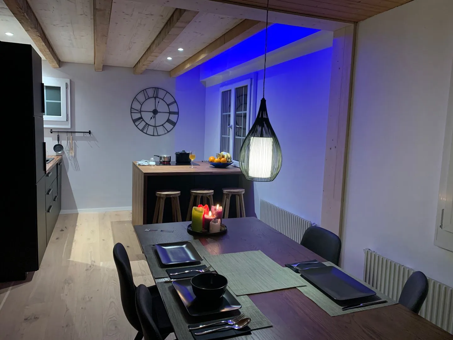 The house has two separate apartments (one upper and one lower unit) that can be rented individually. For larger groups or shared stays, it is also possible to book the entire chalet exclusively. In total, the house can accommodate up to 10 people with four bedrooms and two bathrooms. The modern, open-plan living area with fireplace creates a cosy atmosphere, while the fully equipped kitchen leaves nothing to be desired – ideal for enjoyable evenings after an active day out. Games, books and a home cinema system provide additional entertainment.