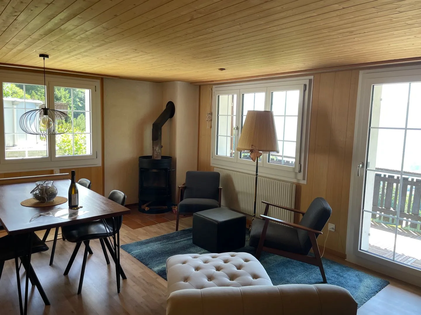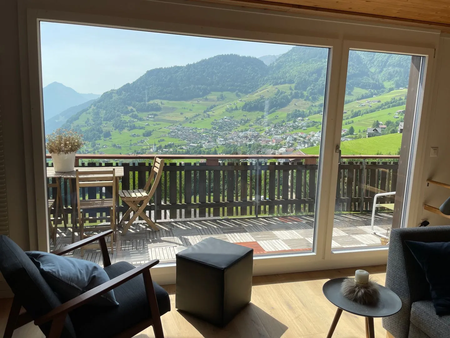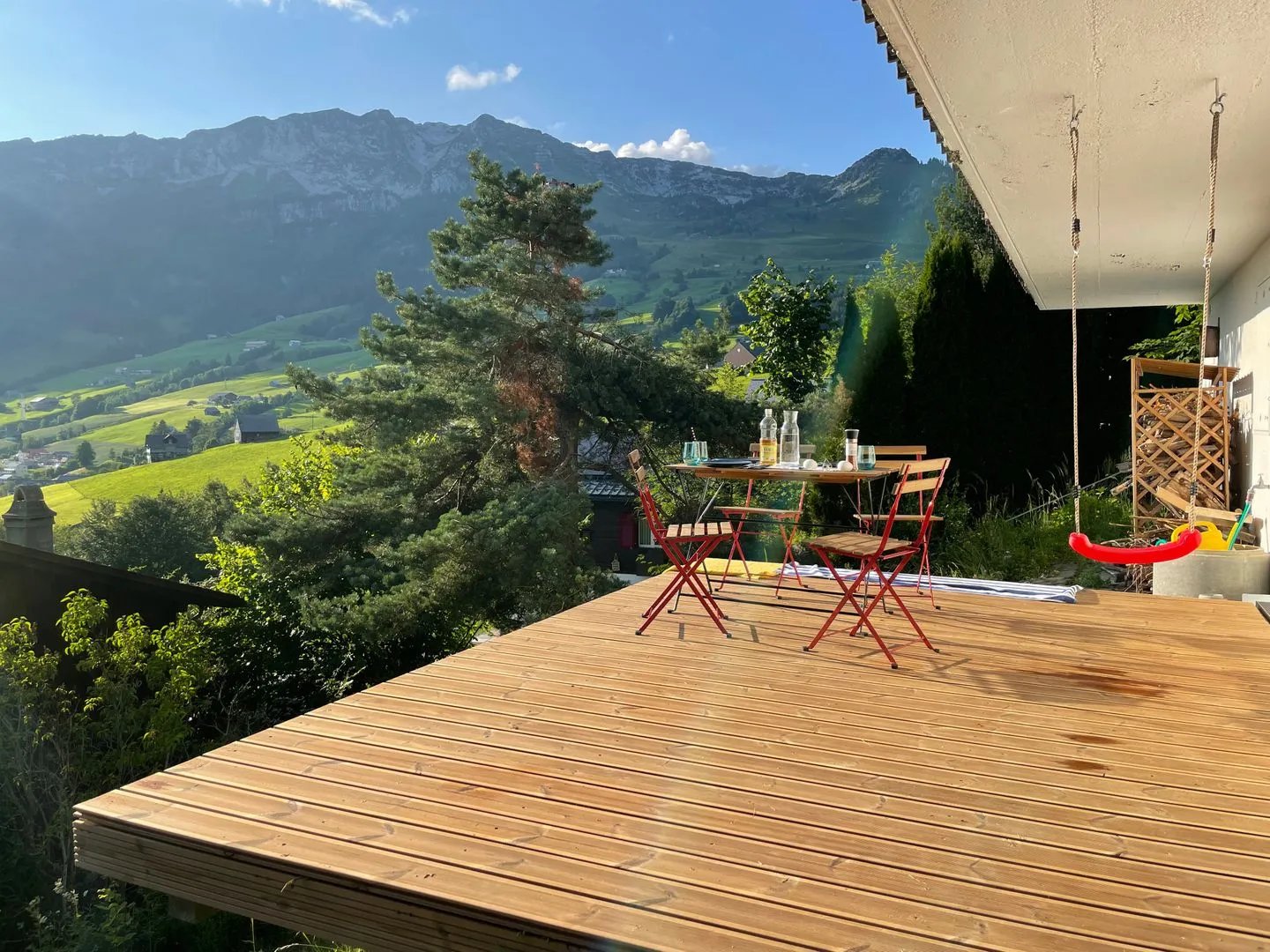 High above Lake Walensee, nestled in the impressive mountain landscape of Amden, lies "The Hirschli" – a stylishly renovated holiday home with exceptional views of the lake, mountains and valley. Its peaceful, natural location and spacious outdoor area make the chalet an ideal place for a relaxing holiday with family or friends.
