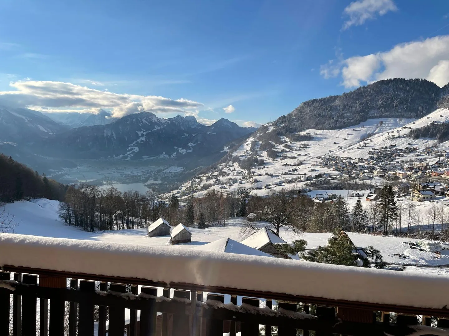 A special highlight is the spacious outdoor area: two large balconies with seating, a private garden with swimming pool, fire pit, barbecue and outdoor kitchen, as well as lounge areas invite you to linger and enjoy. The view is impressive in all-year round – whether at sunset over Lake Walensee or in the snowy winter panorama.