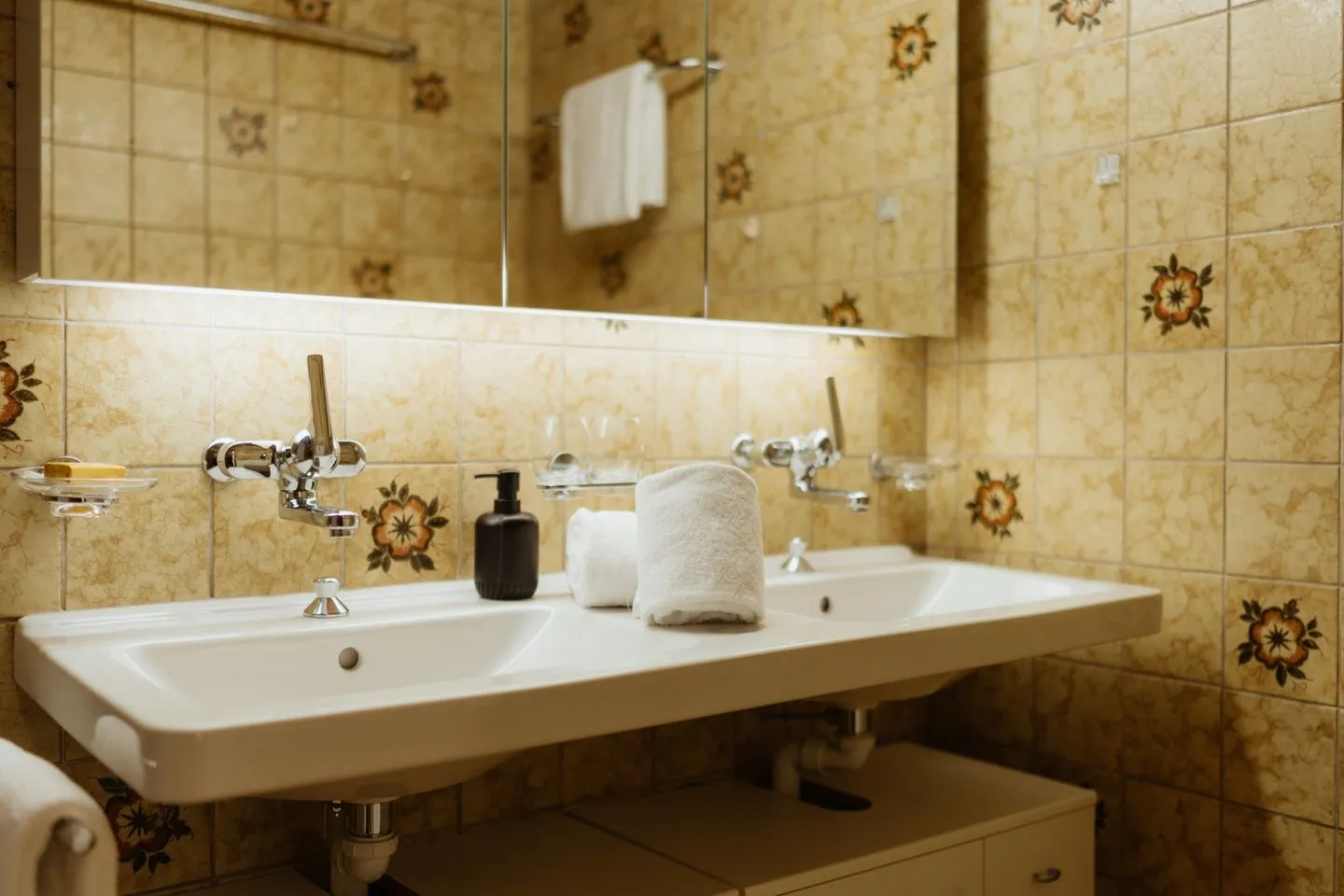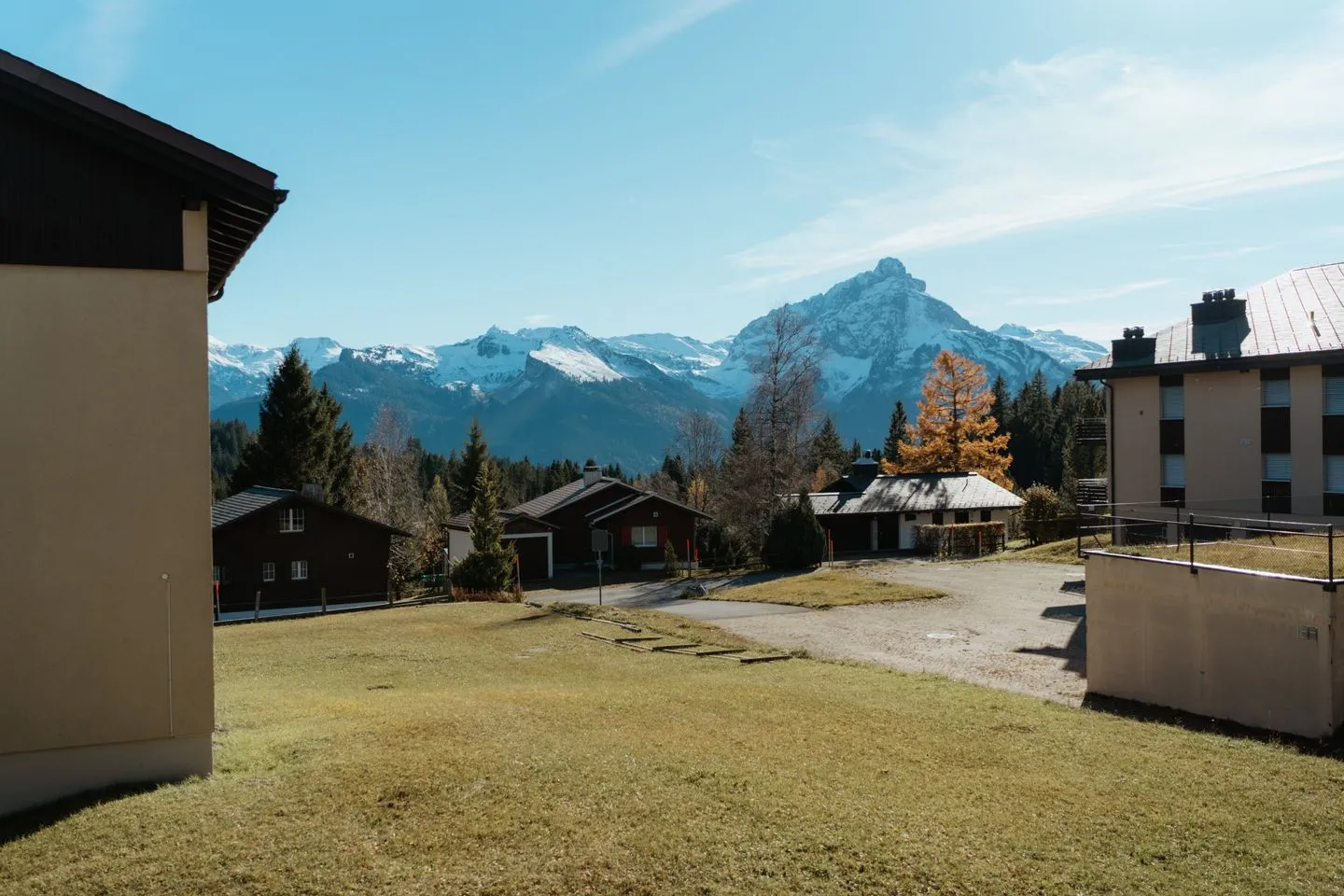 The bedroom has a comfortable double bed with a Tempur mattress, ensuring a restful night's sleep. The living area has an additional sleeping option on the sofa, so the apartment can accommodate up to three people in total. The bathroom is equipped with a combined shower and bathtub, a double sink and a hairdryer. From the small balcony, you can enjoy a magnificent view of the surrounding mountains – ideal for breakfast in the morning sun or a cup of coffee in the afternoon in the fresh Alpine air.